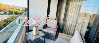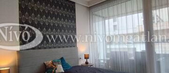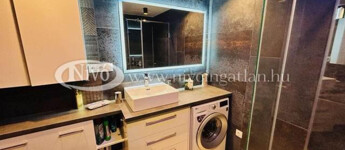 Alsóörsön, partközeli, Balatoni-rálátással, igényes, exkluzív, medencés, 2022-ben épült liftes társasházban, tégla lakás nagy méretű terasszal és teljes, komplett berendezéssel eladó.