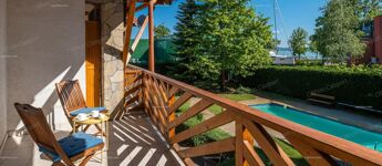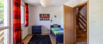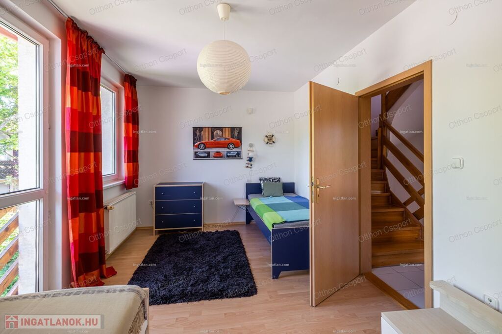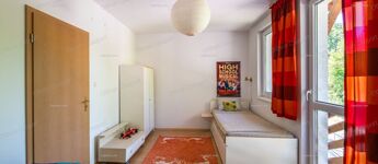 Emelet: két nagyméretű szoba, fürdőszoba, 12 m²-es erkély.