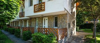 A rendezett, zárt társasház egy gondozott, nagy méretű telken helyezkedik el, ahol a kert, a fűtött medence és a közös területek rendszeres karbantartását gondnok biztosítja.