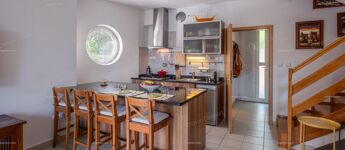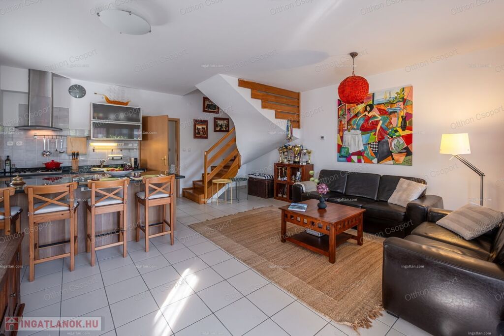 A három szinten elhelyezkedő ingatlan jól elkülönülő élettereket kínál, így ideális családi használatra, vendégek fogadására vagy akár második otthonként is.