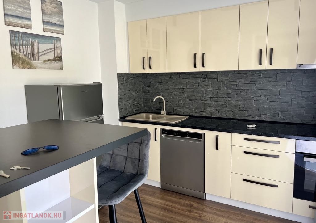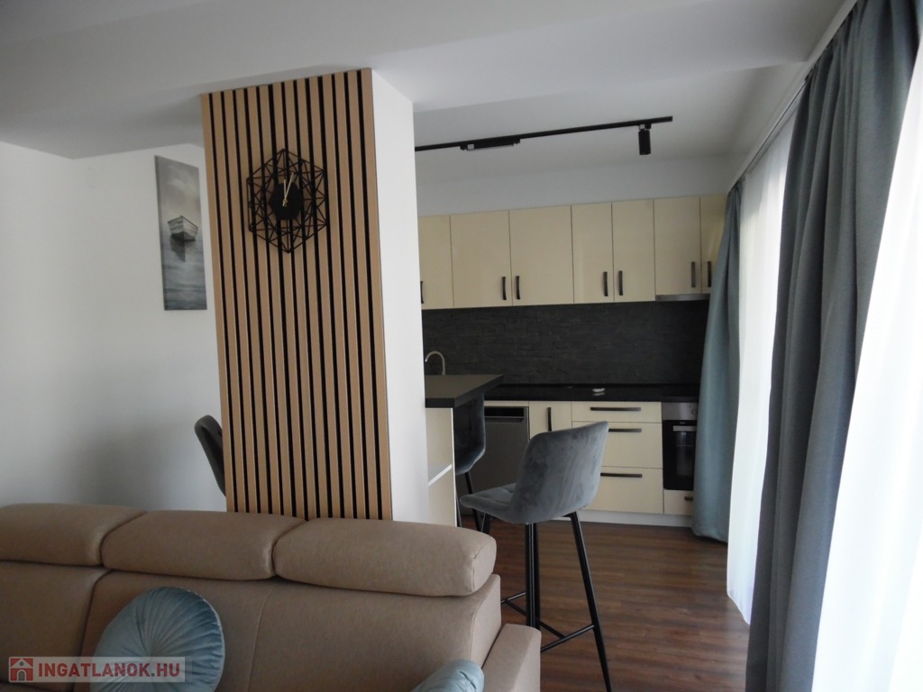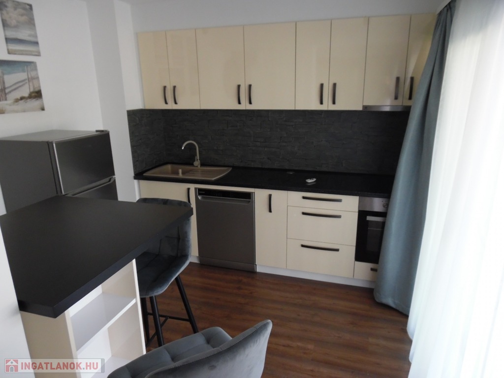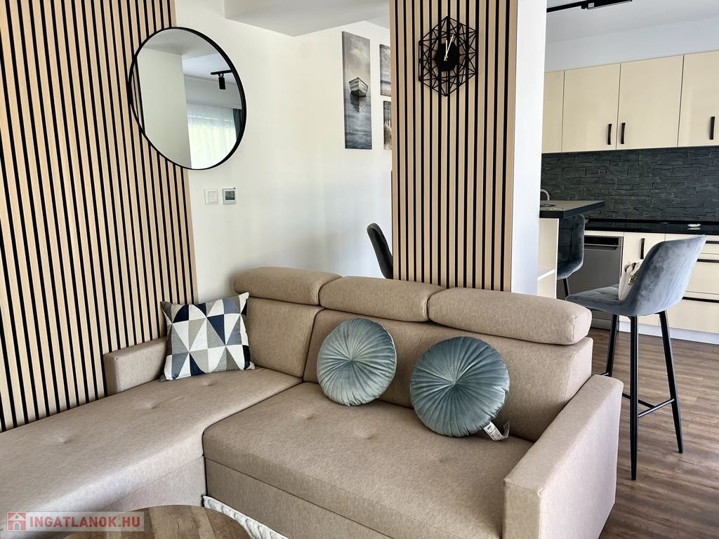 Somogy megye, Balatonmáriafürdő, 54m2-es újépítésű földszinti lakás eladó. A közkedvelt Balaton-parti település strandjának szomszédságában (Part Lakópark) található teraszos (32m2) ingatlanban nappali+konyha+étkező (18m2), hálószoba (9,5m2), fürdőszoba (4m2) valamint közlekedő került kialakításra. Az igényes bútorokkal és gépesített konyhával felszerelt lakás melegéről padlófűtés, a nyári hőség mérsékléséről pedig hűtő-fűtő klíma gondoskodik. További lényeges információk: