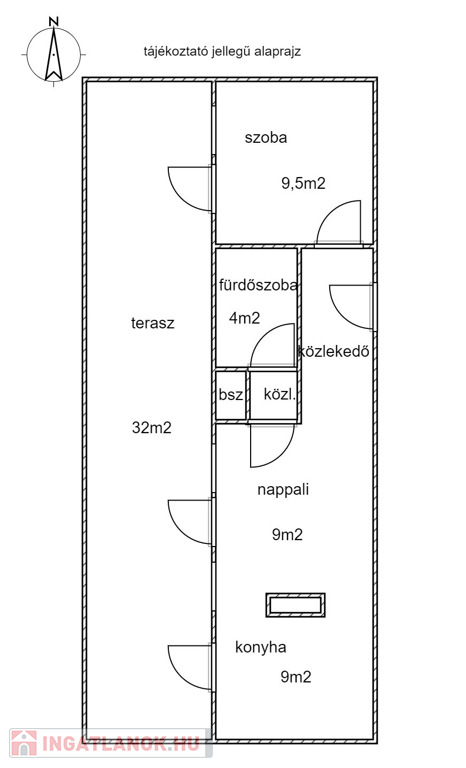 - a lakótér hasznos alapterülete: 39m2. A terasz: 32m2.