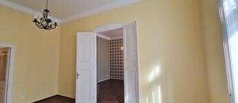 A több,mint 100 éves ház fel van újítva,és csodálatos belső kerttel rendelkezik. Az két lakás egybenyitásával kialakított ingatlan első emeleten található,körfolyosósóról megközelíthető. A kétszárnyú bejárati ajtó tágas előtérbe vezet,és az egész lakást a nagyvonalú ,tágas terek jellemzik.