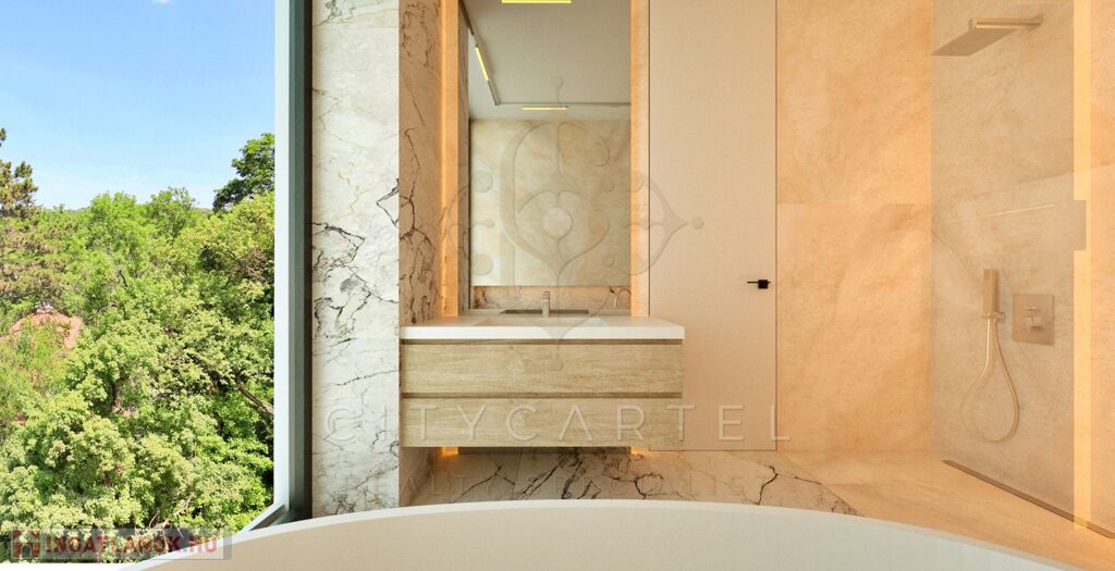 Engedje meg, hogy bemutassam Önnek Budapest II. kerületének legújabb büszkeségét, a festői Apáthy-szikla lábánál, Rubik Ernő legendás Villájának a szomszédságában, egy lélegzetelállító természetvédelmi terület mellett, 4.500 nm-es ősfás parkban, egy újépítésű, 7 lakásos, 2 liftes társasház legfelső szintjén, egy 214 nm-es, nappali + 3 hálószobás, 3 fürdőszobás penthouse lakás, összesen 236 nm-es terasszal eladó.