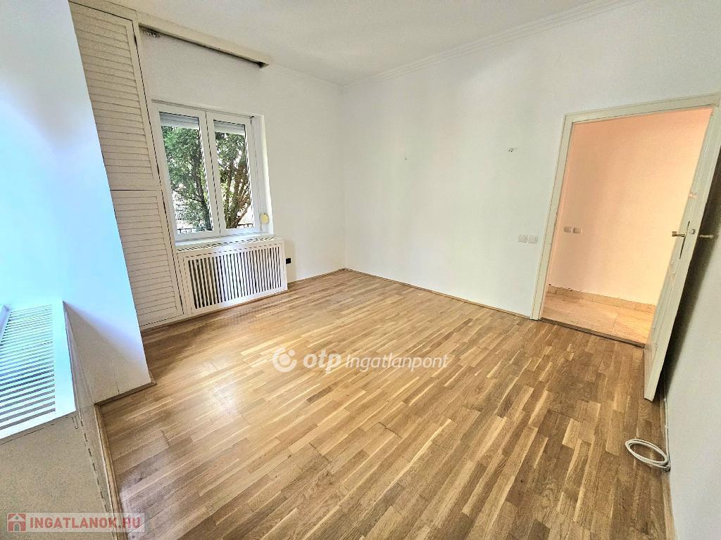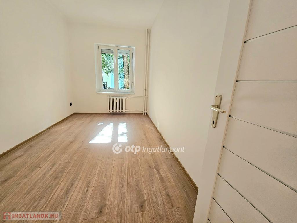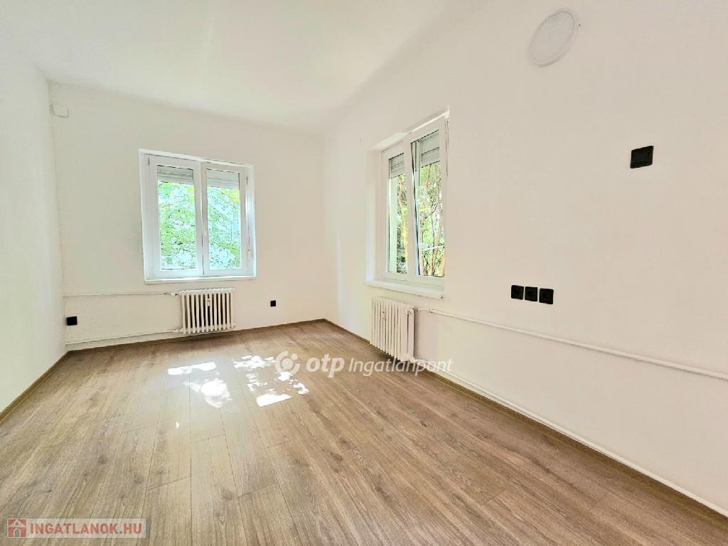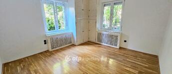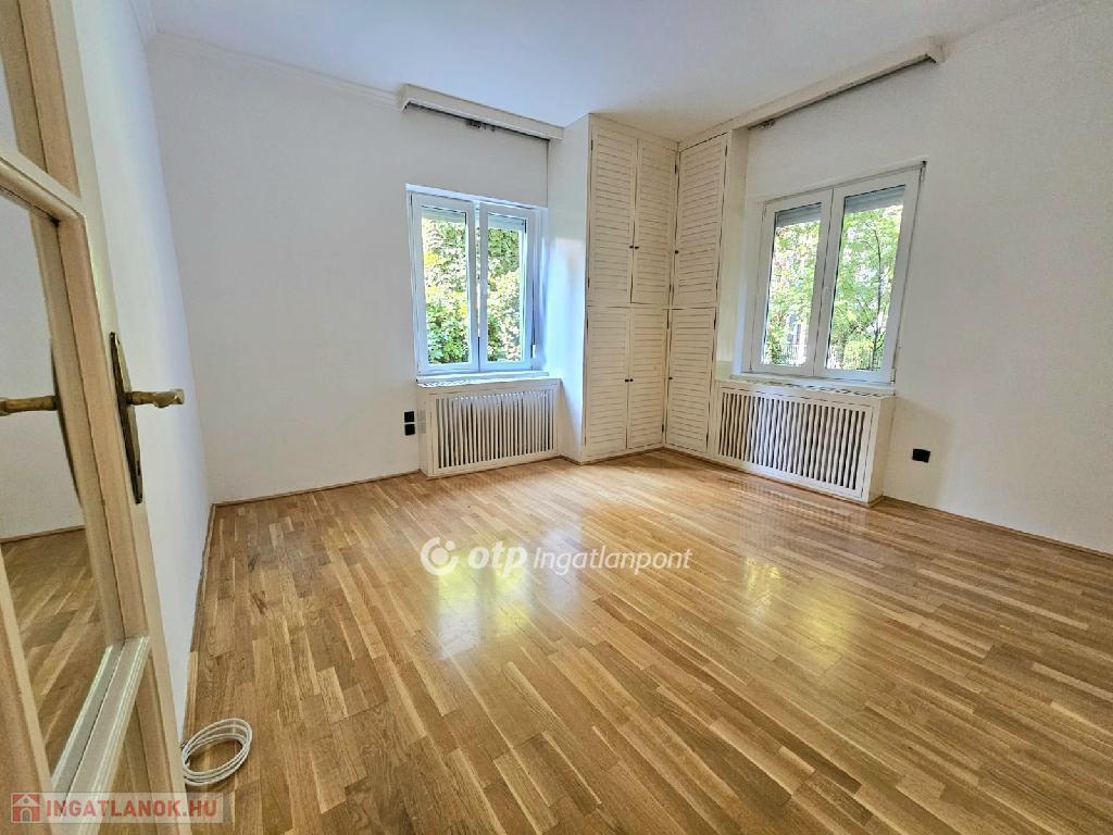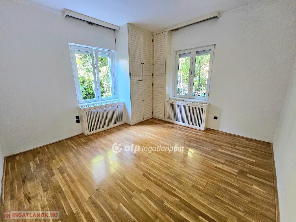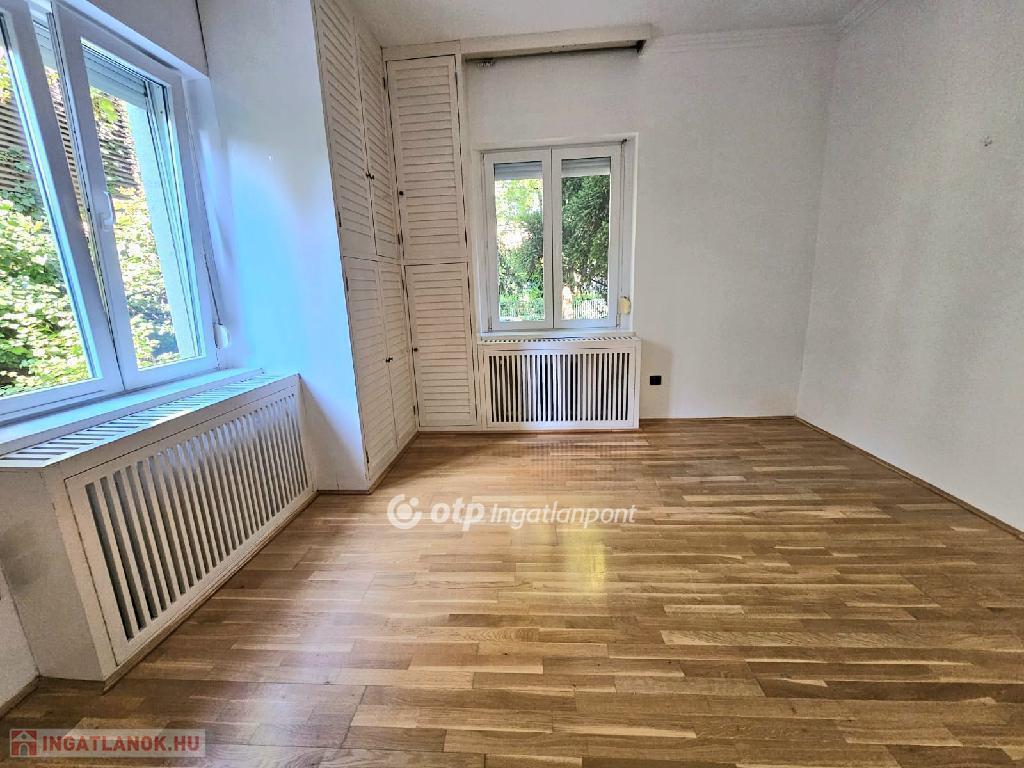 A 16 négyzetméteres hálószobában is van két nagy ablak, egy beépített sarokszekrény és ebben a helységben is jó minőségű faparketta található.