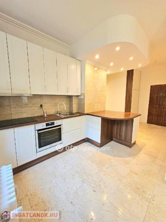 A konyharész gépiesített, magas minőségű beépített bútorral, konyhaszigettel van felszerelve, újszerű Whirlpool indukciós főzőlappal, egy szintén Whirlpool elektromos sütővel, inox Electrolux gőz- és páraelszívóval és ledes világítással.