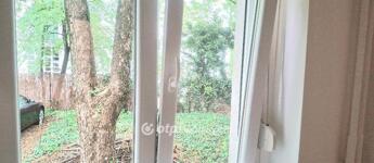 A lakás magas földszinten/félemeleten található, (alattunk is lakás van), az ablak magasság 210 cm így nincs az udvarról belátás, megmarad a privát szféránk és még lépcsőznünk sem kell.