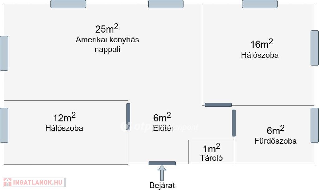 Az ingatlan 2.90 m belmagasságú, körbe 7 darab nagy, dupla, hőszigetelt és redőnnyel ellátott ablakkal van szerelve, melyeknek köszönhetően világos.