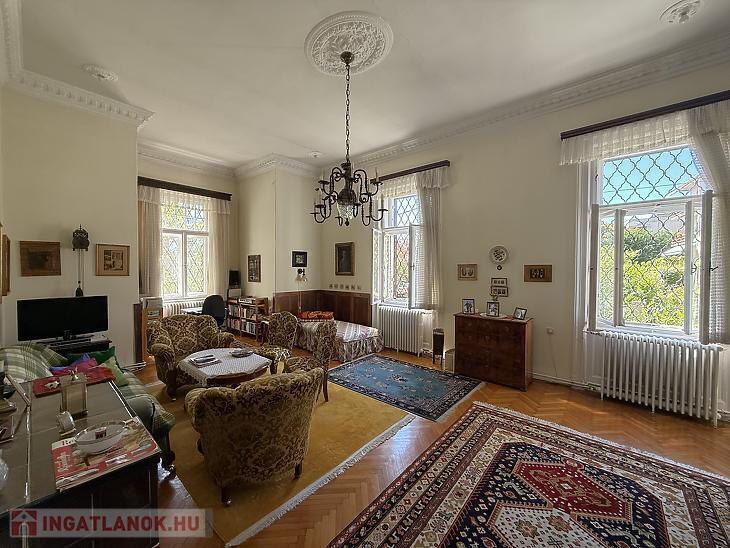 Eladó egy kivételes adottságokkal rendelkező, 195 m²-es, kertkapcsolatos lakás csendes mellékutcában, zöldövezeti környezetben. A lakás külön bejárattal rendelkezik, így teljes intimitást biztosít lakóinak. A 4 méteres belmagasság és a hatalmas ablakok tágas, világos tereket teremtenek, amelyek egyedülálló hangulatot nyújtanak.
