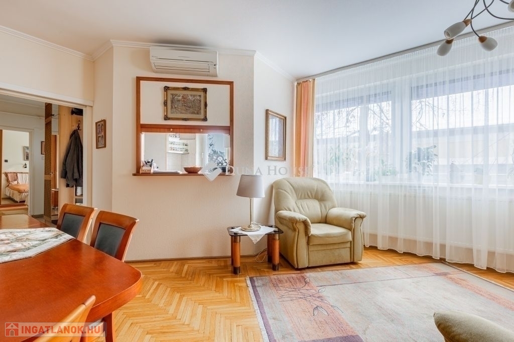 Eladó a II.kerületben, a közkedvelt Apostol utcában egy 66 m2-es, nappali+2 hálószobás, jó állapotban lévő, csendes, kertre néző, napfényes lakás 9 lakásos rendezett társasházban, garázzsal, tárolóval. Az ingatlan cirkófűtéses , műanyag nyílászárókkal rendelkezik, klímával felszerelt. Ablakokat 2010-ben cserélték, kazánt 3 éve, magát a fűtésrendszert, illetve a villanyvezetékeket 2010-ben. 2003-ban hőszigetelés, betonozás, újraparkettázás történt.