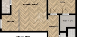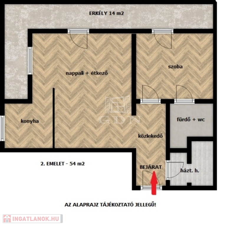 2. EMELET: 54 m2 – 2 szoba – 2 fürdő – TERASZ: 14 m2