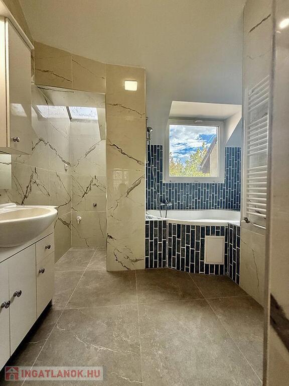 A felújítás során a szobák új laminált parkettát, a vizeshelyiségek pedig nagy, minőségi járólapos burkolatot kaptak. A fürdőszobában pedig beépítésre került új kád, illetve egy építtetett zuhanyzó. Az összes belső nyílászáró is cserére került. Beszerelésre került egy új kondenzációs kazán is kémény béleléssel, illetve a villanyhálózat cseréje is megtörtént és jelentős bővítés is.