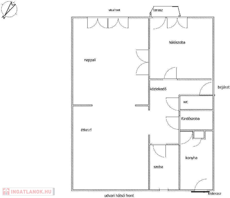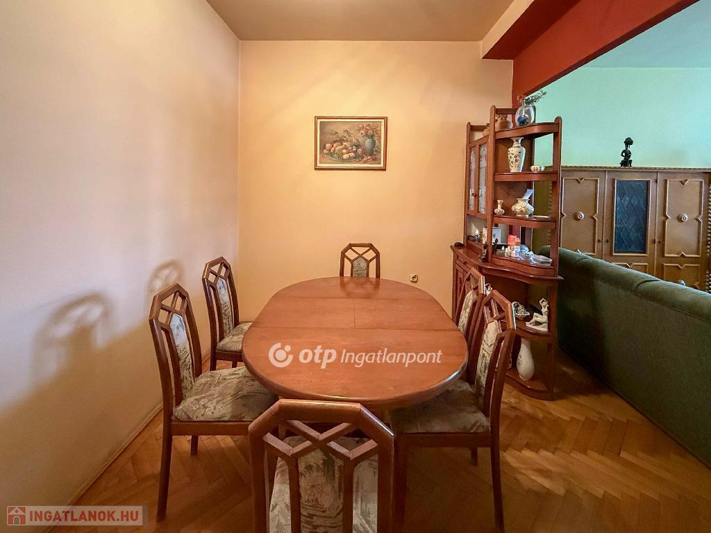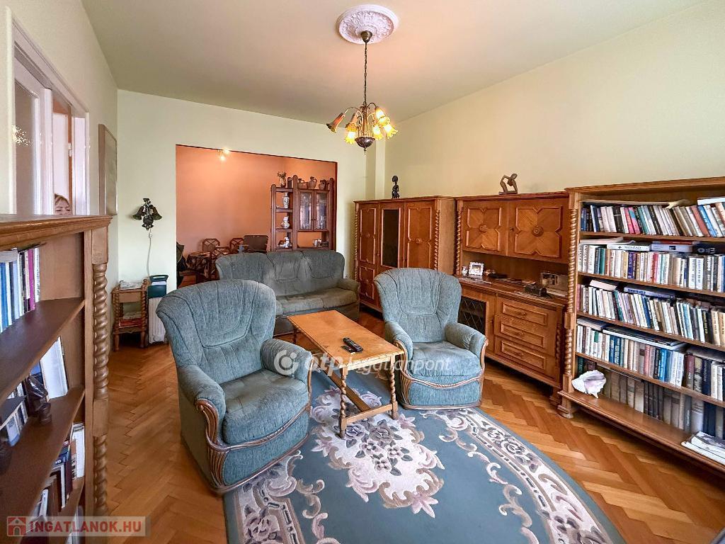 Biztonsági ajtón keresztül jutunk az ingatlanba, ahol egy mára már letünni készülő kor eleganciájával, korhű bútorzattal, igényes korabeli és folyamatosan megújult családi otthon tárul elénk. Tágas nappali egy külön nagy étkező térrel elválasztva, de mégis egyben. Nem recsegő tölgyfa parketta nagyon jó minőségben, koloniál bútorok, kétoldalas bár, nyitható 6 személyes étkezőgarnitúra nagypolgári stílusban. Egy hatalmas hálószoba, beépített erkéllyel, egy kisebb szoba, külön WC, fürdőszoba káddal és zuhanyfülkével, mosógéppel, modern konyha pár éves nagyon szép konyhabútorral, mosogatógéppel, gáztűzhellyel, elszívóval,valamint egy hideg spejz. A hálóból egy beépített zárt terasz nyílik az utcafrontra, reggeli kávézáshoz kitűnő. A konyhánál is a jó szellőzést egy francia 1 m2-es terasz biztosítja, ami a hátsó kertre néz.