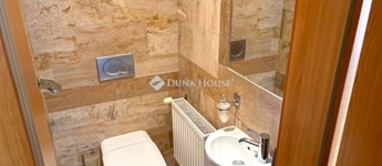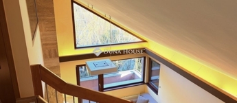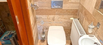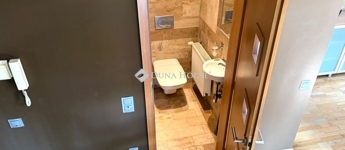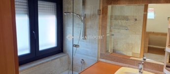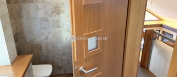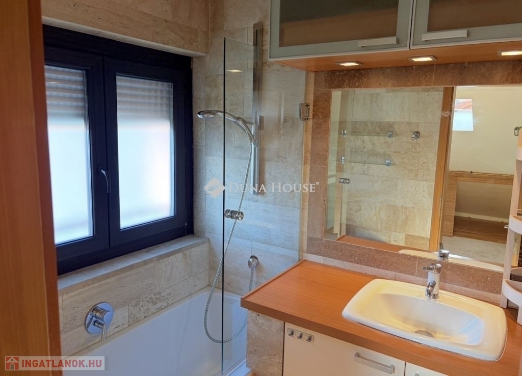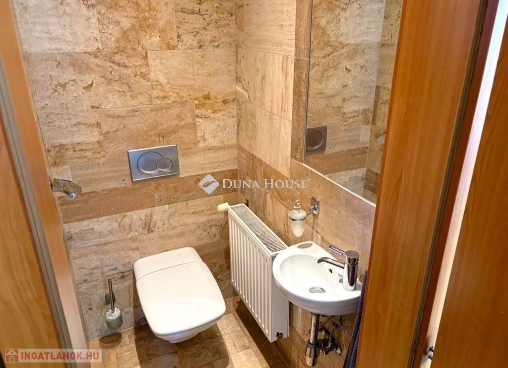 Az ingatlan belső kialakítása igényes anyaghasználattal készült: a legtöbb helyiségben travertin mészkő burkolat található a padlón és a falakon is.