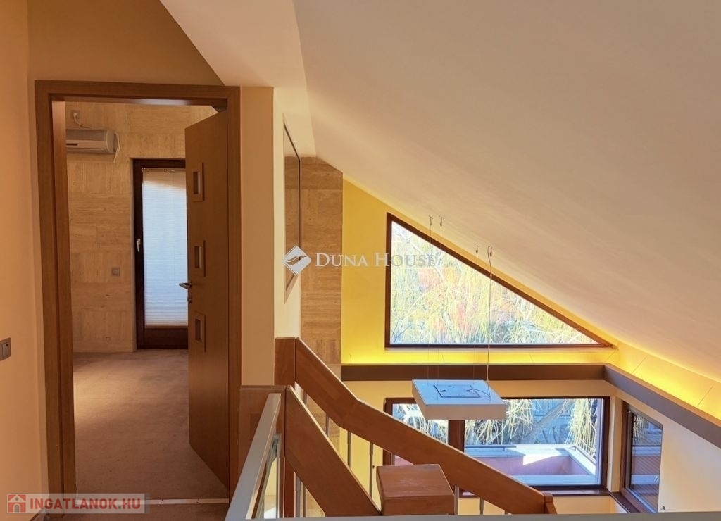 A nappali parkettás, míg a galéria szőnyegezett, ami meleg, otthonos érzetet biztosít.