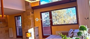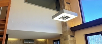 A nappali egyik különleges hangulati eleme a működő kandalló, amely nemcsak esztétikai értéket képvisel, hanem a hűvösebb időszakban valódi, meghitt meleget is ad az otthonnak.