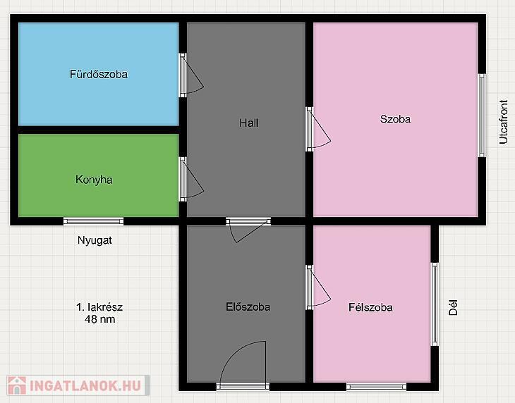 Újpesten, a Bródy Imre Gimnázium közelében, csendes mellékutcában, 3 lakásos udvarban, eladásra kínálunk egy 48 nm-es, 1+1 félszoba+hallos elosztású, beköltözhető állapotú házrészt.