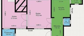 A lakásban több ponton záródó biztonsági bejárati ajtót és elektromos redőnnyel felszerelt, műanyag keretes, thermo üveges nyílászárókat építettek be. A szobákban laminált padlót helyeztek le, a többi helyiséget járólappal burkolták. A melegvíz ellátásról villanybojler, a fűtésről pedig gázkonvektor gondoskodik. Az elszámolás fogyasztás alapján is történhet, a jelenlegi átalánydíj 13.000.- Ft/hó. Nagy belmagasságának köszönhetően a belső szobában a hasznos alapterületet galéria kialakításával növelték.