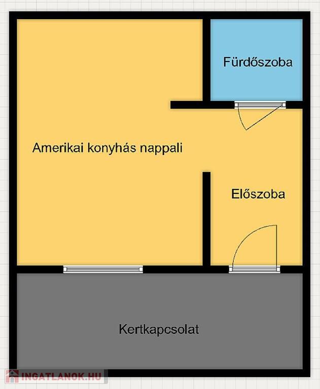 Az ingatlan előtt kb. 20 nm-es privát, lekerített kertkapcsolat helyezkedik el.