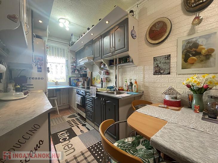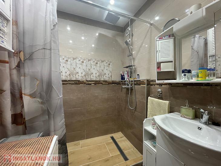 Az ingatlan jó állapotú, a nyílászárók eredeti, műanyag thermo üvegesek, a szobák laminált parkettásak, a többi helyiség járólapos. A konyhabútort kicserélték, a villany-vezetékeket részben áthúzták, a fürdőszoba teljes felújítása (vízcsövek, épített zuhany lefolyórendszerrel, szellőző rendszer, járólap, csempe) 1 hónapja megtörtént.