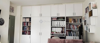 - erkélykapcsolatos, tágas nappali, egyik fal mentén mennyezetig érő beépített szekrénnyel, polcos, akasztós, fiókos elemekkel