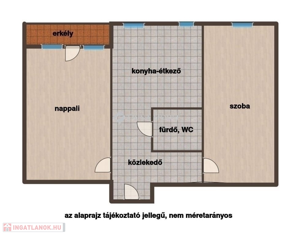 - déli tájolás, napfényes, világos szobák és konyha