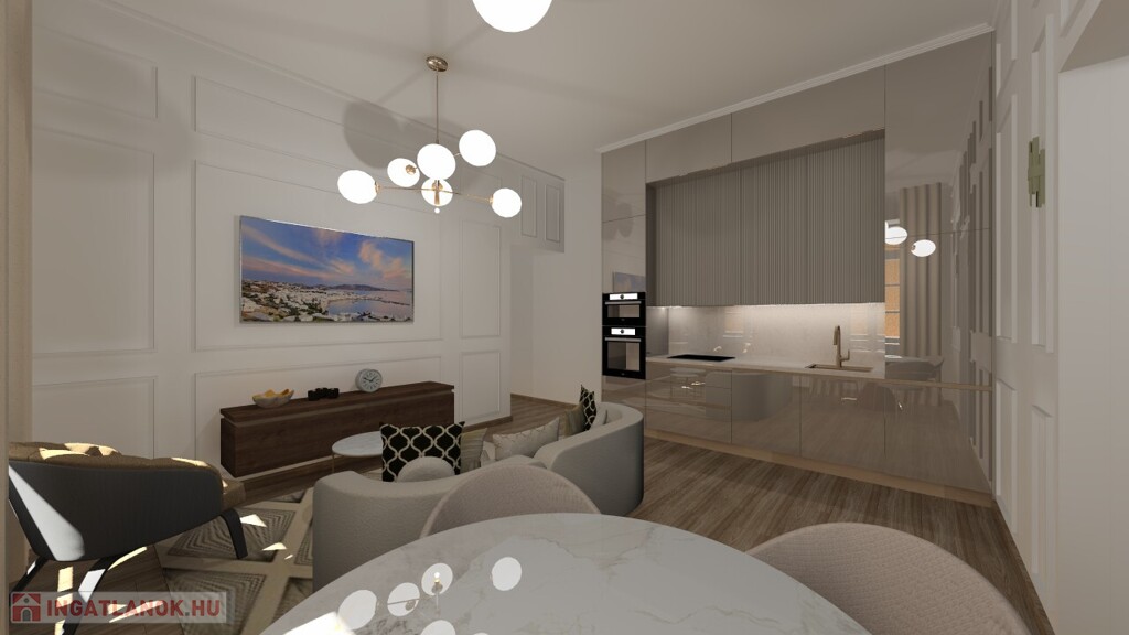 A minőségi, korszerű felújítás magas színvonalú városi otthont eredményezett: a lakás tágas terekkel, bőséges természetes fénnyel és egyedi tervezési lehetőségekkel rendelkezik.