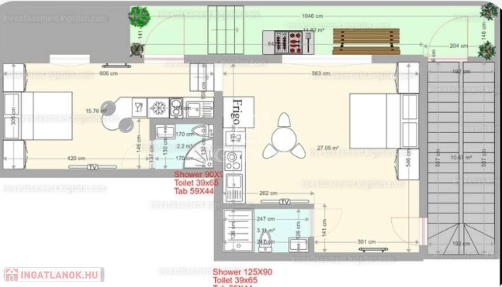 Teljesen felujított az ingatlan, két külön bejárattal, hűtő-fűtő klímás, akár teljes berendezéssel, amit tartalmaz az ár is.