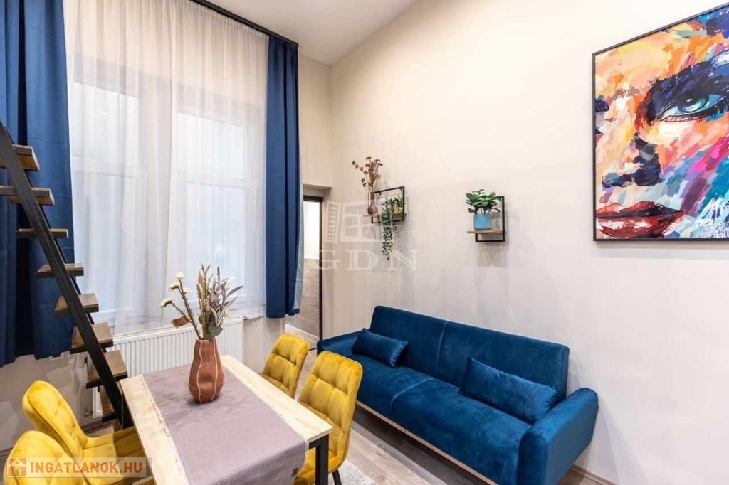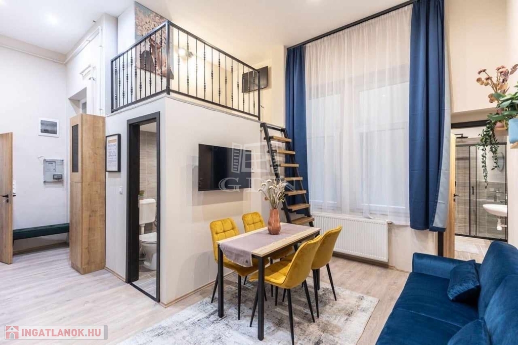 Budapest VIII. kerületében, a Német utcában, hangulatos társasház földszintjén kínálunk eladásra két külön bejáratú, belső kétszintes, teljeskörűen felújított, bútorozott és gépesített lakást.