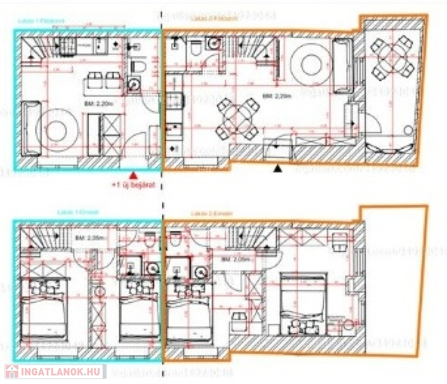 B lakás: 51 m² + 11 m² télikert, (alsó szint: 26 m², felső szint: 25 m²) Ár: 75 M Ft
