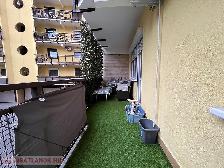 • nagy méretű, belső udvarra néző tágas erkély tárolóval, ahol kényelmesen elférnek a kerti bútorok vagy növények,