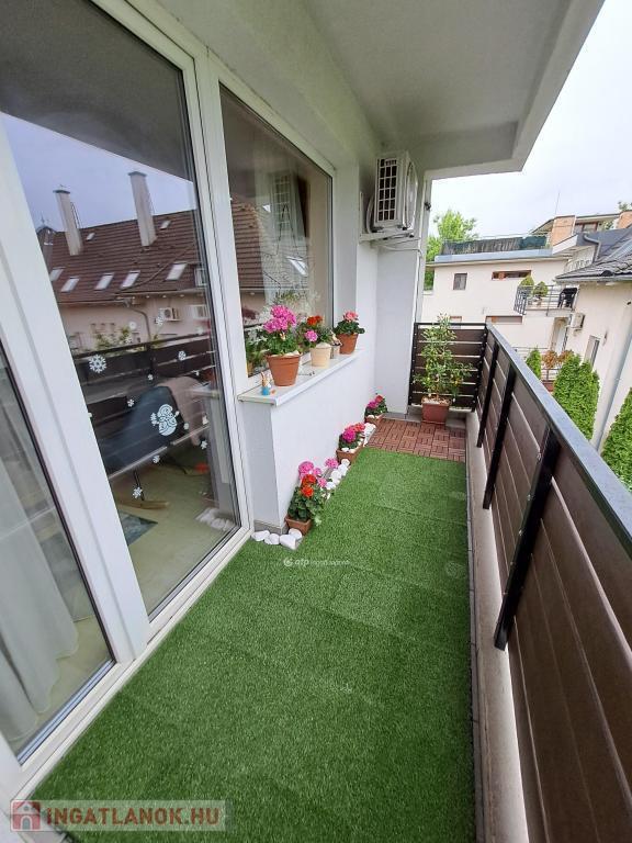 Napfényes Életérzés: Első emeleti, 77 nm-es, DNy-i fekvésű lakás, amely egész nap fényárban úszik. Az ablakok és a tágas 11,7 nm-es erkély (részben beépítve: 2,25 nm) kizárólag a környező, gondozott kertekre néznek, garantált a nyugalom és a szép kilátás.