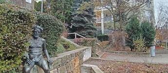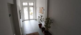 A társasház és a közös kert is szépen karbantartott és gondozott.