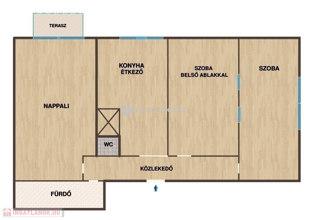 (Nappali + 1 hálószoba + 1 szobára nyíló ablakos szoba)