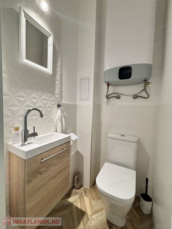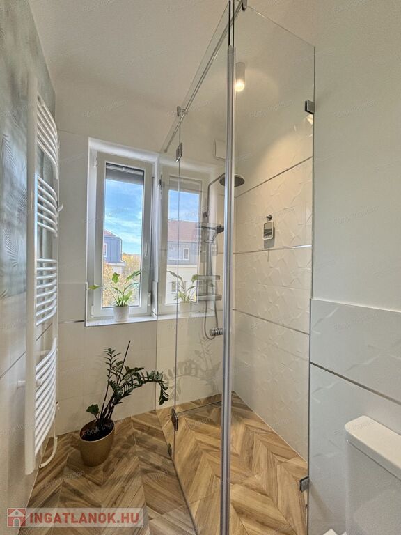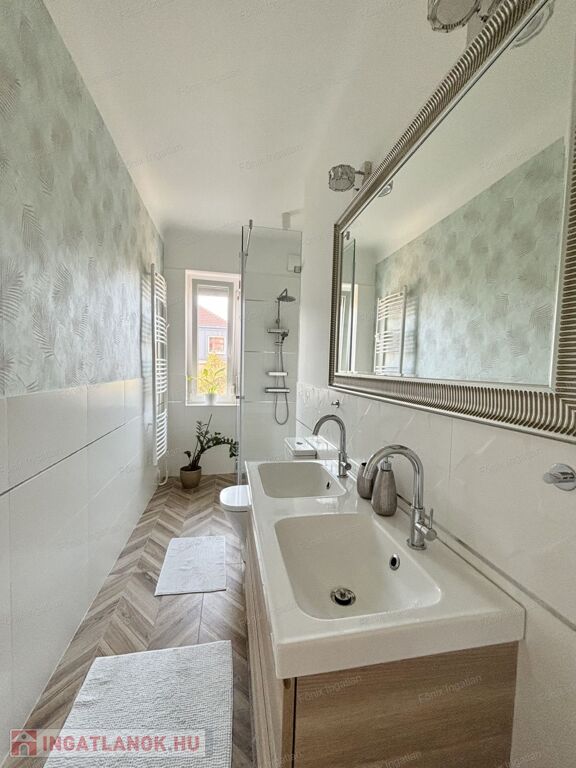 A praktikus elrendezésnek köszönhetően külön gardróbhelyiség is kialakításra került, ahol a mosógép is megtalálható. A komfortot hűtő-fűtő klíma biztosítja, a rezsiköltség pedig rendkívül alacsony, így gazdaságos