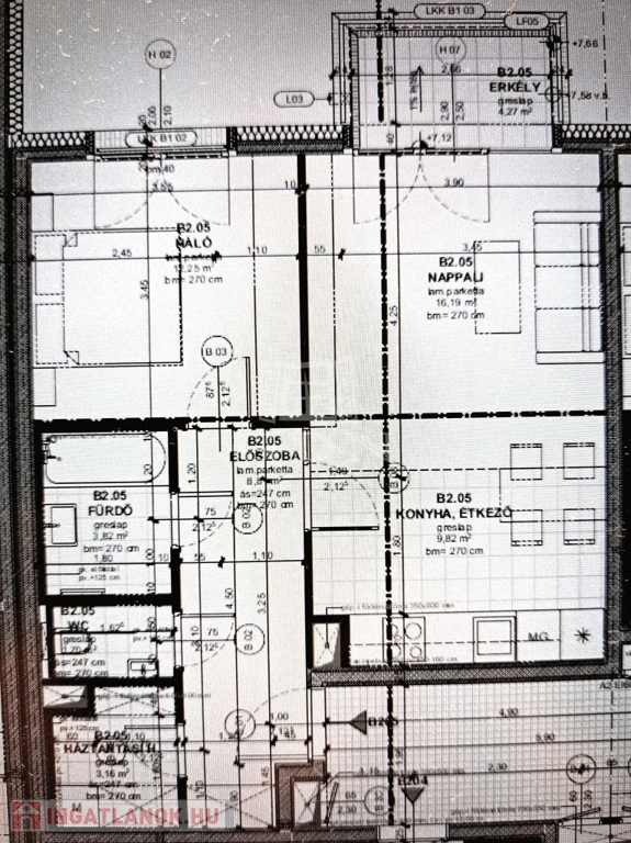A hirdetésben szereplő lakás 55,75 m²-es, 2 szobás,2. emeleti, és tartozik hozzá egy 4,27 m²-es erkély is.