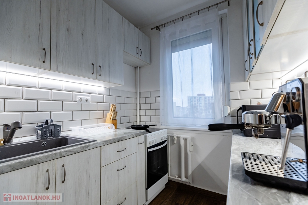 Az igényesen kialakított, világos konyha esztétikus és praktikus, a lakás erkélye pedig kellemes kiegészítő tere a mindennapoknak, ideális pihenésre vagy kikapcsolódásra.
