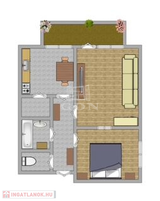 A lakás 54 nm+ 7 nm erkély