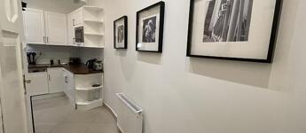Közvetlen szomszédságában találjuk a teljeskörűen gépesített (sütö, főzőlap, elszívó, mosogatógép, hűtőszekrény, beépített mikro) konyhát.
