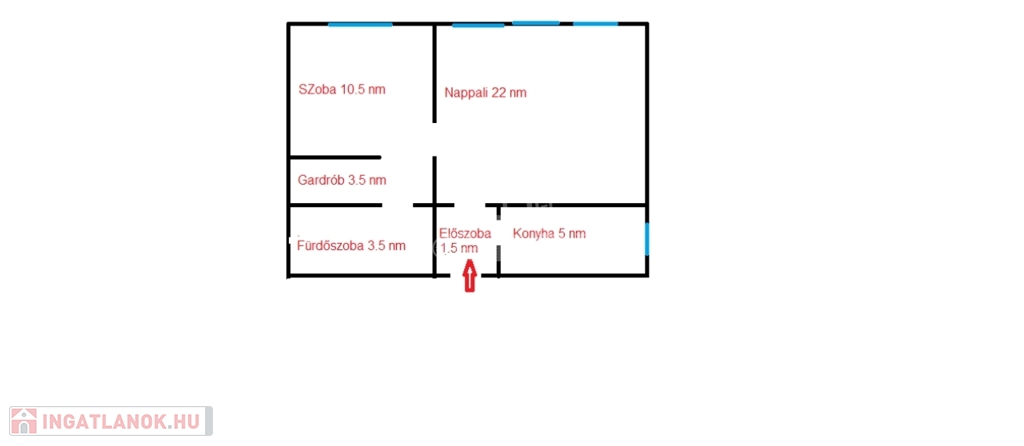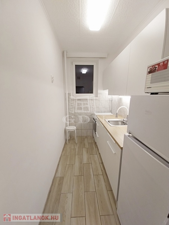 Belépve az 1.5 nm-es előtérbe érkezünk, jobb oldalon találjuk az ablakos 5 nm-es konyhát, bal oldalon a 3.5 nm-es kádas fürdőszobát.