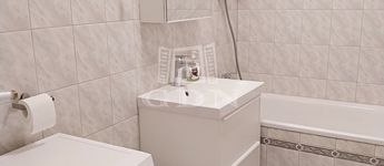 A konyhabútor , tűzhely ( villanysütő-gázfőzőlap ) fürdőszobai mosdókagyló-szekrénnyel a tavaszi felújítás során lett beépítve.