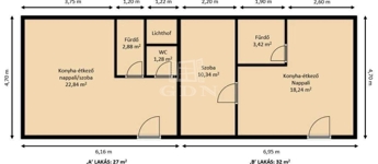 A felújítás friss, igényesen kivitelezett, a nagyobbik lakás teljes bútorzattal és gépesítéssel együtt eladó. Nem kell hozzá semmit hozzátenni – azonnal használható, akár kiadásra, akár saját célra.