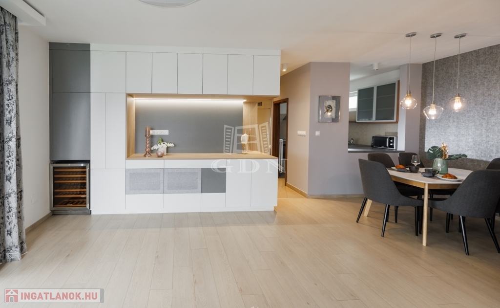 A tágas, napfényes nappali a lakás központi tere, közvetlen teraszkapcsolattal. A hálószobából és a fürdőszobából is kiléphetsz a teraszra, így a friss levegő és a nyugalom mindig karnyújtásnyira van.