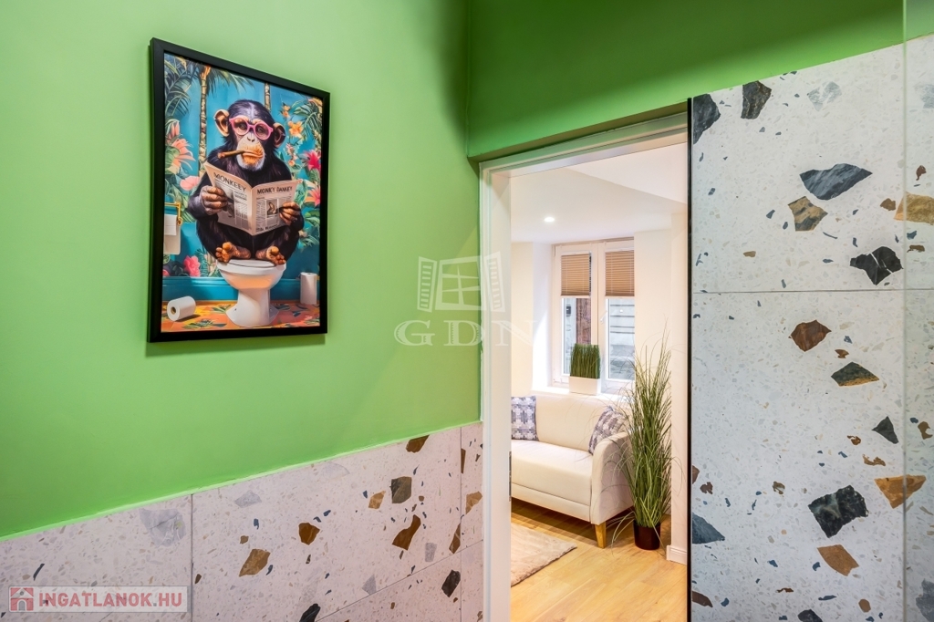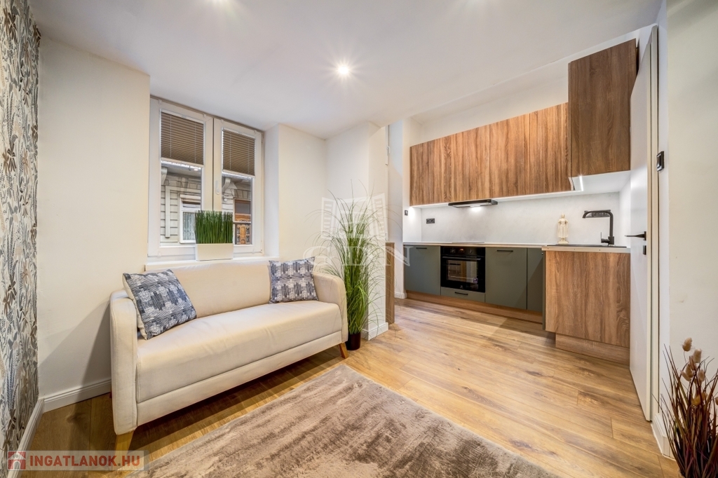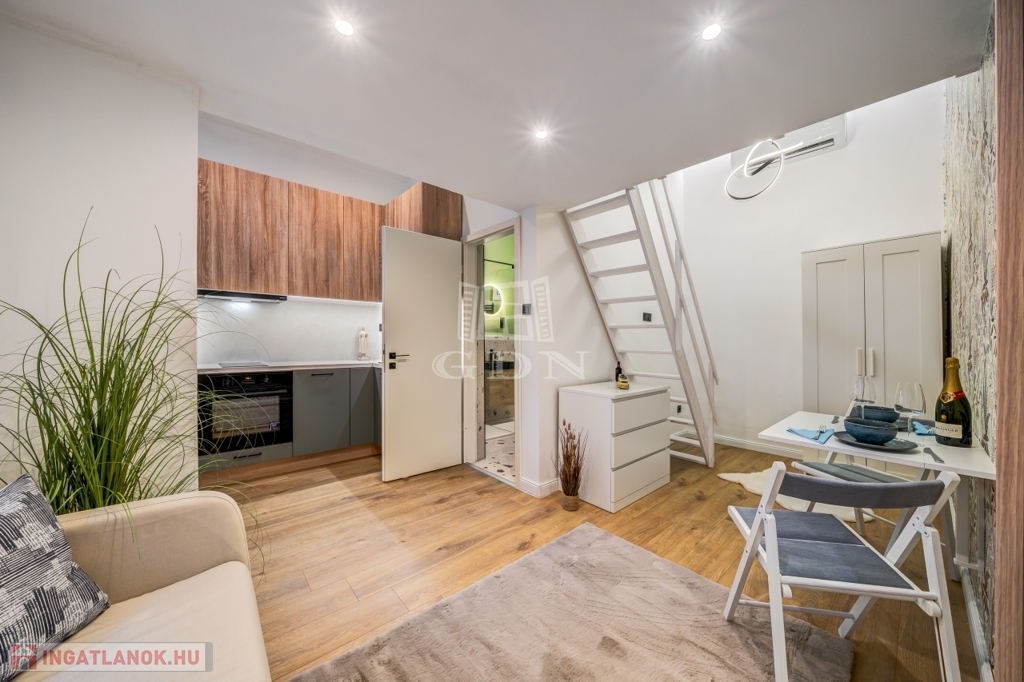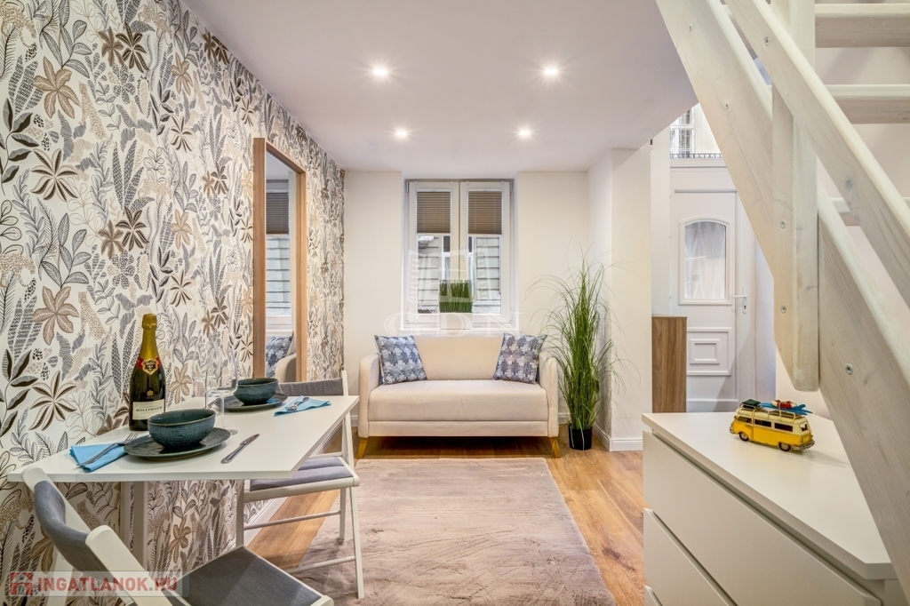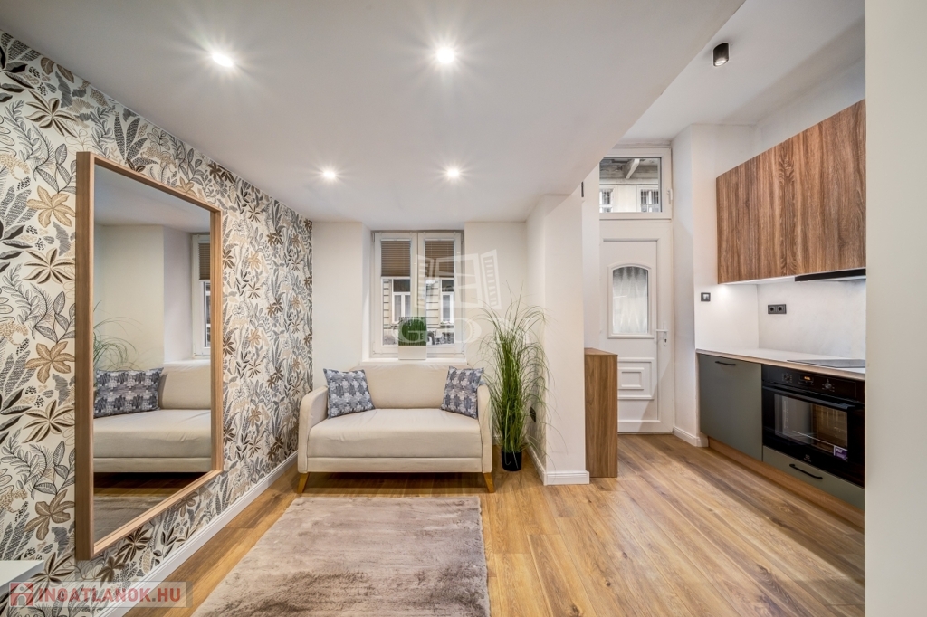 Eladó egy teljes körűen újonnan felújított, udvari nézetű, déli tájolású, 21 m²-es stúdiólakás, amelyhez 5 m² fekvőgaléria tartozik.
