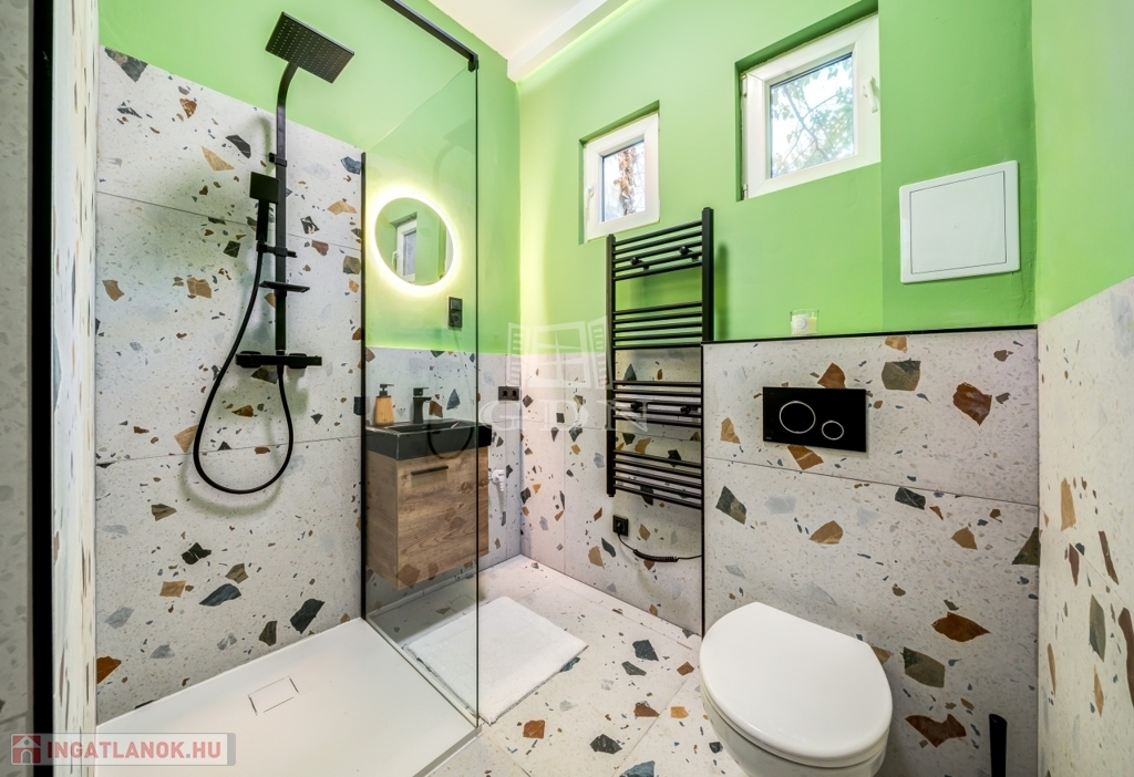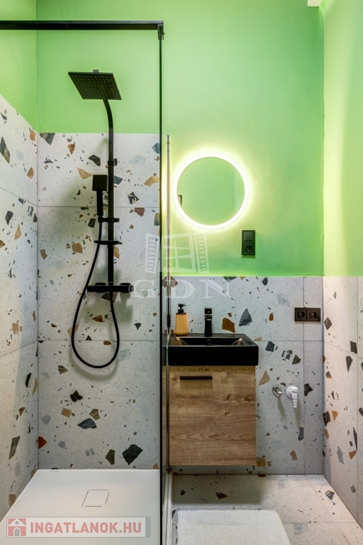 A lakás egy korábbi nagyobb ingatlan professzionális leválasztásával jött létre, a két lakás külön bejárattal, külön villany- és vízórával rendelkezik.