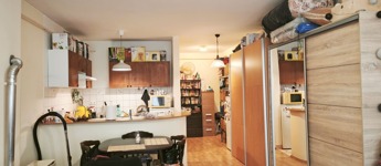 A társas házban a lakóközösség tagjai barátságosak, segítőkészek, a lakás kiváló elhelyezkedésű, frekventált helyen található. A lakás K-i fekvésű, földszinti elhelyezkedése ellenére is kellően világos. Az utcáról kocsival elektromos kapubejárón keresztül jutunk be a zárt közös udvarba, ahol minden tulajdonos számára van lehetőség parkolni. A zárt lépcsőházon keresztül érkezünk a közös folyosóra ahonnan a jó minőségű fa ajtón keresztül jutunk a lakásba. Belépve az előszobával szemben a kádas fürdőszoba nyílik, amiben a toalett is helyet kapott. Balra fordulva a közlekedőből a tágas gépesített, amerikai konyhás, ebédlős nappali tárul elénk. Ebben a nagy térben jobbra a konyhai részt egy félkör alakú pult választja el, ami előtt egy étkező asztal is bőven elfér, szolgálva a komfortos étkezést a család számára. A nagyon tágas helységben, bőven marad hely a pihenésre szánt nappali rész kialakítására is. A szoba a mellékutcára néz ennek ellenére csendes, világos. A lakásban a két éve beépített klíma szolgálja a komfort érzetet nyáron.