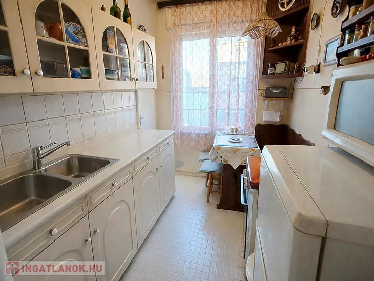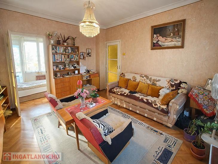 Tágas nappali, hálószoba, konyha, előszoba, fürdőszoba és kamra áll rendelkezésre. A lakás közepes állapotú, beköltözhető. A fűtést gázkonvektor biztosítja. Tartozik hozzá egy 3 m2-es belső udvarra néző erkély, egy 4 m2-es tároló a pincében és egy zárt udvari autóbeálló.