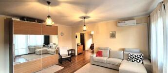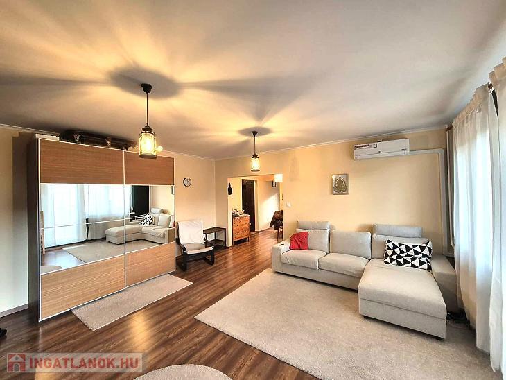 A lakás jó elosztású, világos, a szobákban jó minőségű laminált parketta található a többi helyiség járólappal burkolt. Az otthon melegéről házközponti kazán gondoskodik. A nyílászárók műanyag thermo üvegesek, redőnnyel ellátottak. A beépített bútorok a vételár részét képezik (konyhabútor gépesítve és előszobabútor). A nappaliból csatlakozik az erkély, amely szép kilátást biztosít a Budai hegyekre.