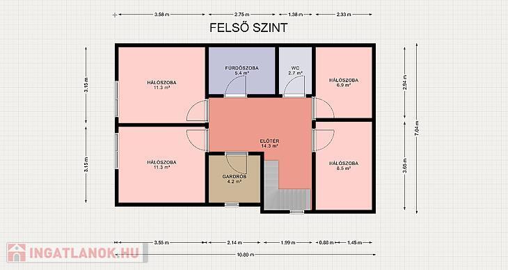 előtér, négy szoba, gardrób, fürdőszoba, külön mellékhelyiség