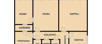 2+1 félszoba, ablakos konyha, kádas fürdőszoba, mellékhelyiség, 2 gardrób, kamra, közlekedő, erkély.